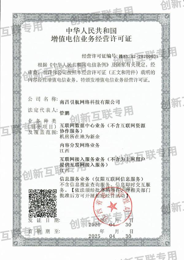 《中华人民共和国增值电信业务经营许可证》 赣 B1.B2-20200035